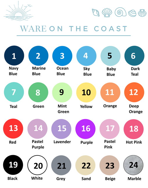 2. Tell us what colours you would like in the personalisation box for each letter (e.g. W7, Y5, A4, T7, T5 or W - Teal, Y - Baby blue, A - Sky Blue, T - Teal, T - Baby blue).